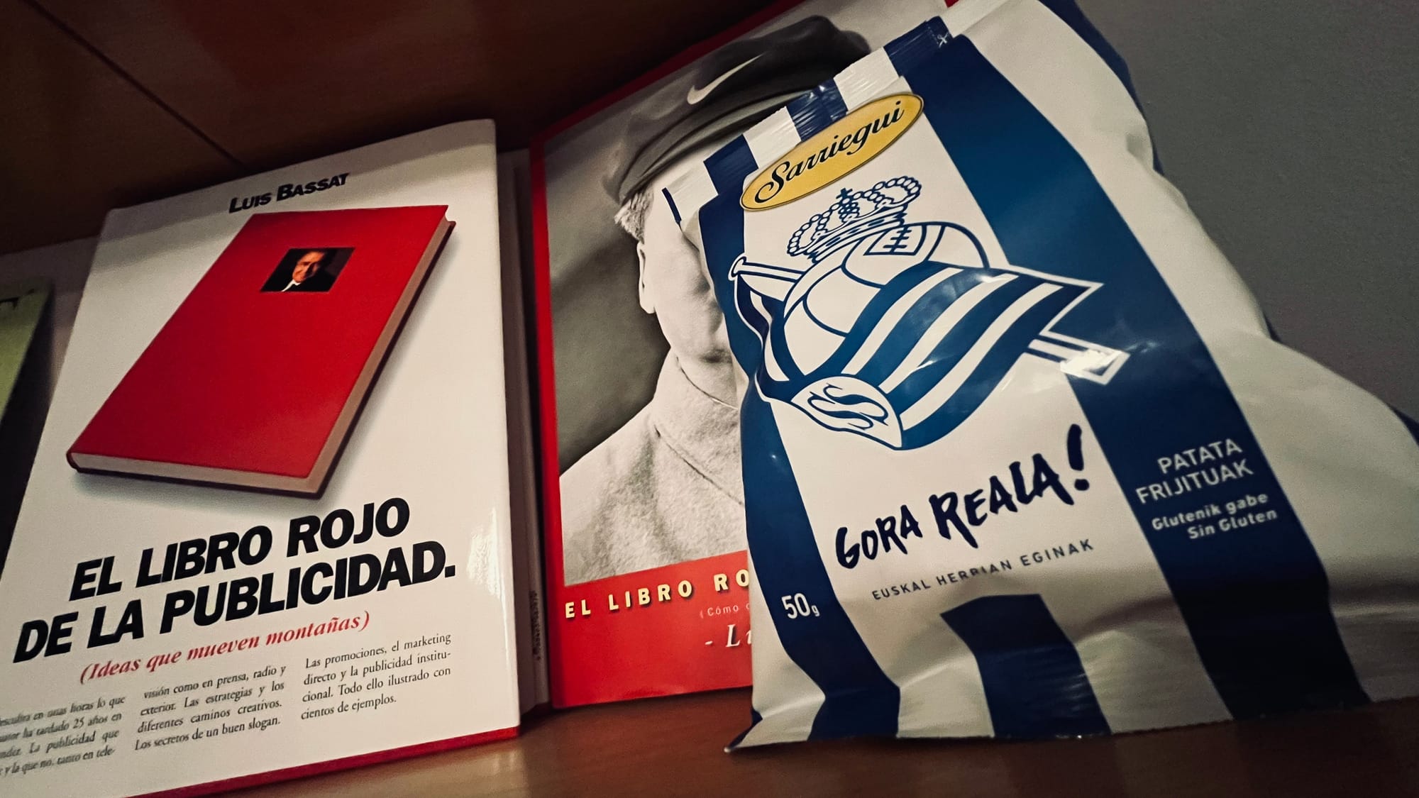 ¿Y qué hacía tan especial a esta bolsa de patatas típica de bar?. Porque su packaging emulaba la camiseta de la Real Sociedad. Equipo de Fútbol más seguido en esta localidad. Unas patatas fritas de la Marca "Sarriegui", que también cuentan con otra bolsa muy especial y diferente con la camiseta del Athletic Club de Bilbao. En las primeras se lee "Gora Reala" y en la segundas "Aúpa Athletic".